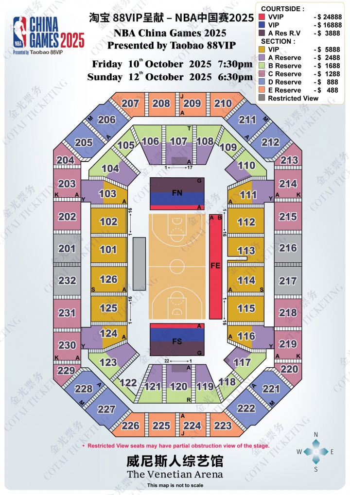 8月20日,NBA官方正式发布了2025年中国赛的门票价格详情。
